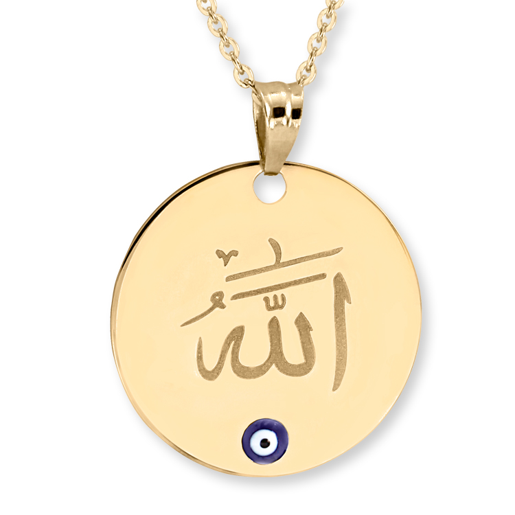 14 Ayar Altin Allah Yazili Plaka Kolye Nusrettaki