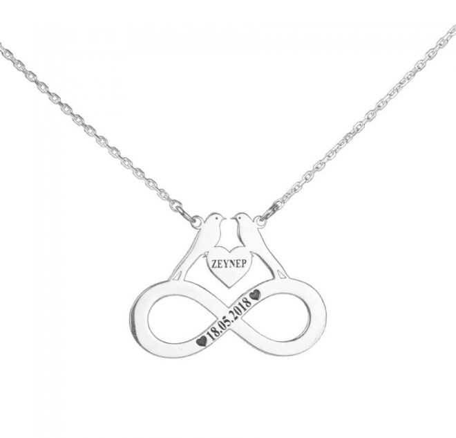 Isim Yazili Kus Figurlu Gumus Sonsuzluk Kolye