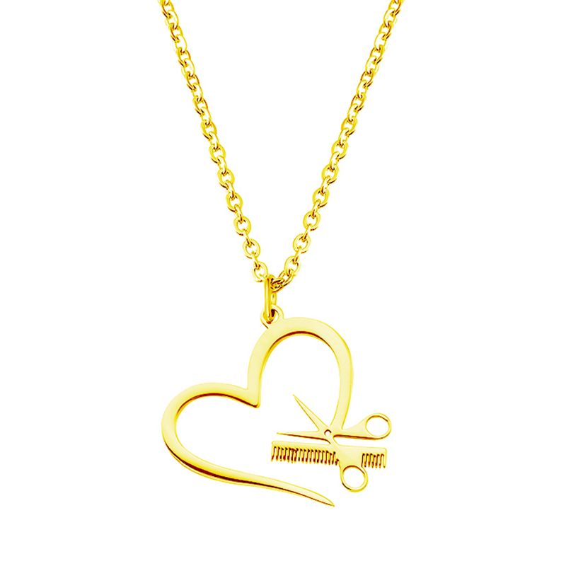 Makas Tarak Kolye Kolye Kalp Seklinde Paslanmaz Celik Gumus
