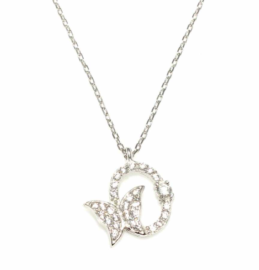 Cemberli Kelebek Modeli 925 Ayar Gumus Kolye Beyaz Beyaz Tas