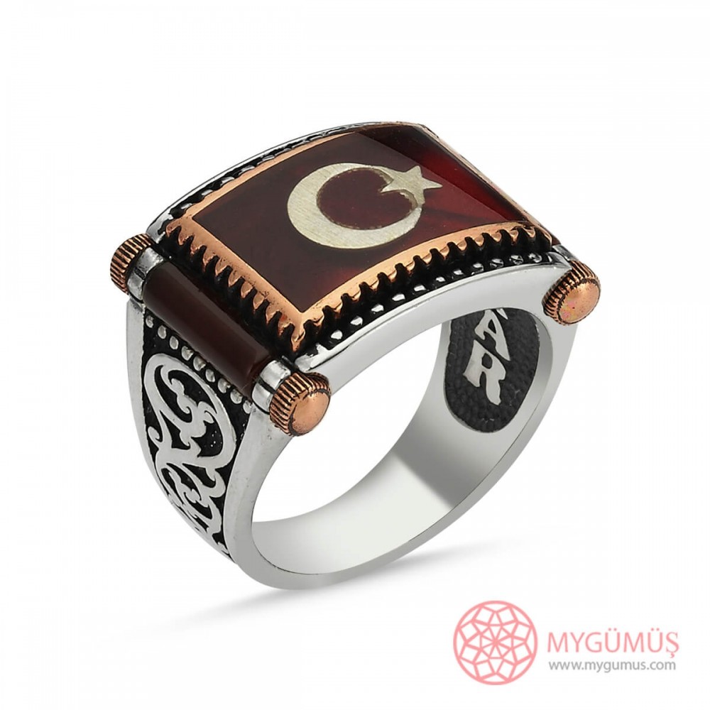 Turk Bayragi Motifli Erkek Gumus Yuzuk My101223 Mygumus Com