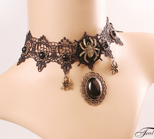 Satin Al Kadinlar 2019 Serin Siyah Kristal Elmas Kolye Orumcek