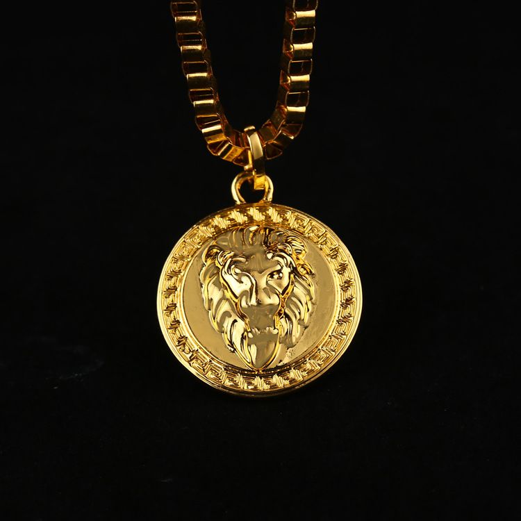 Erkek Madalyon Desen Altin Sesi Kolye Kolye Ile Ucretsiz Halat