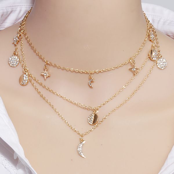Satin Al 2019 Moda Kristal Kolye Kolye Ay Yildiz Geometrik Altin