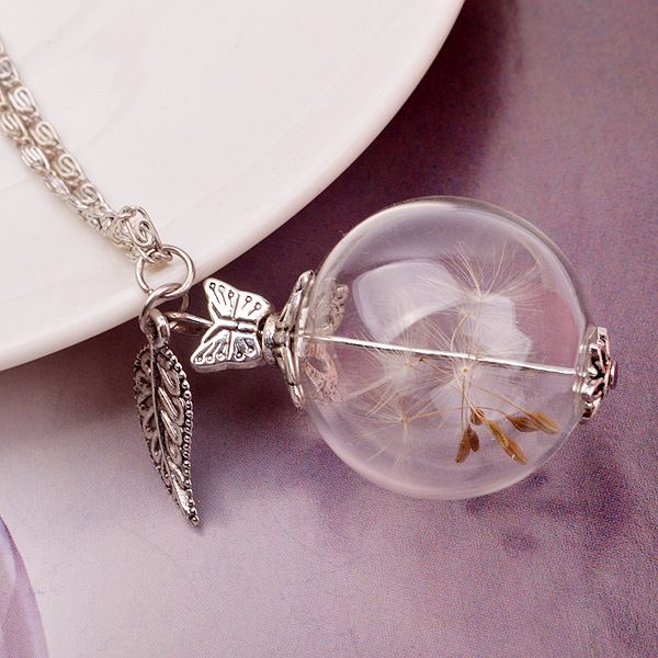 Wholesale Glass Dry Flower Necklace Real Natural Flower Bottle