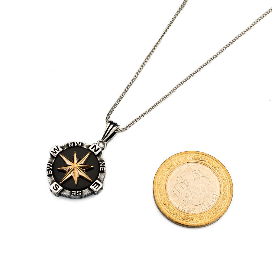925 Sterling Silver Compass Necklace With Leather Cord