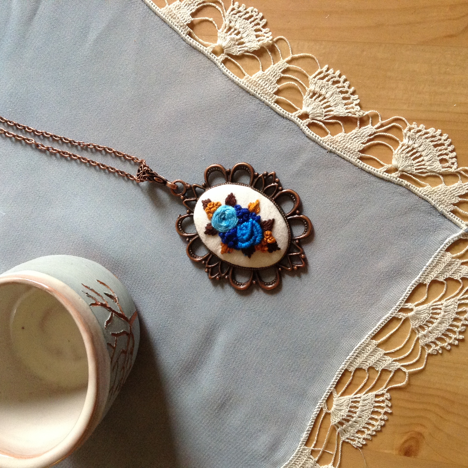 Mavi Cicek Islemeli Kolye Kudra Tasarim El Yapimi Aksesuarlar