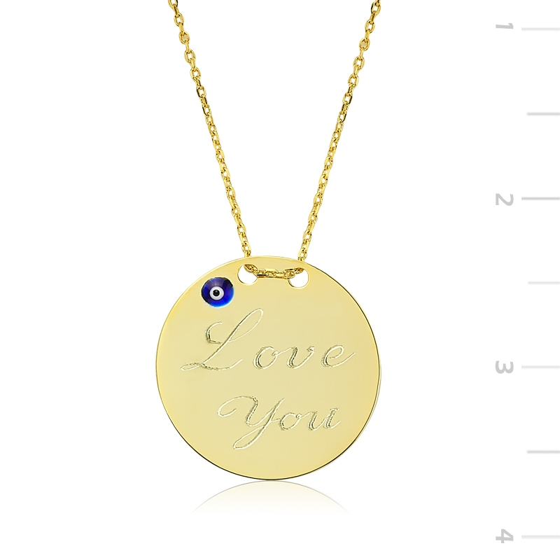 14 Ayar Altin Isimli Nazar Boncuklu Yuvarlak Plaka Kolye Nusrettaki