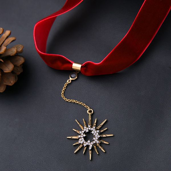 2017 Vogue Taki Siyah Kurdele Ile Kalin Altin Cift Zincir Kolye