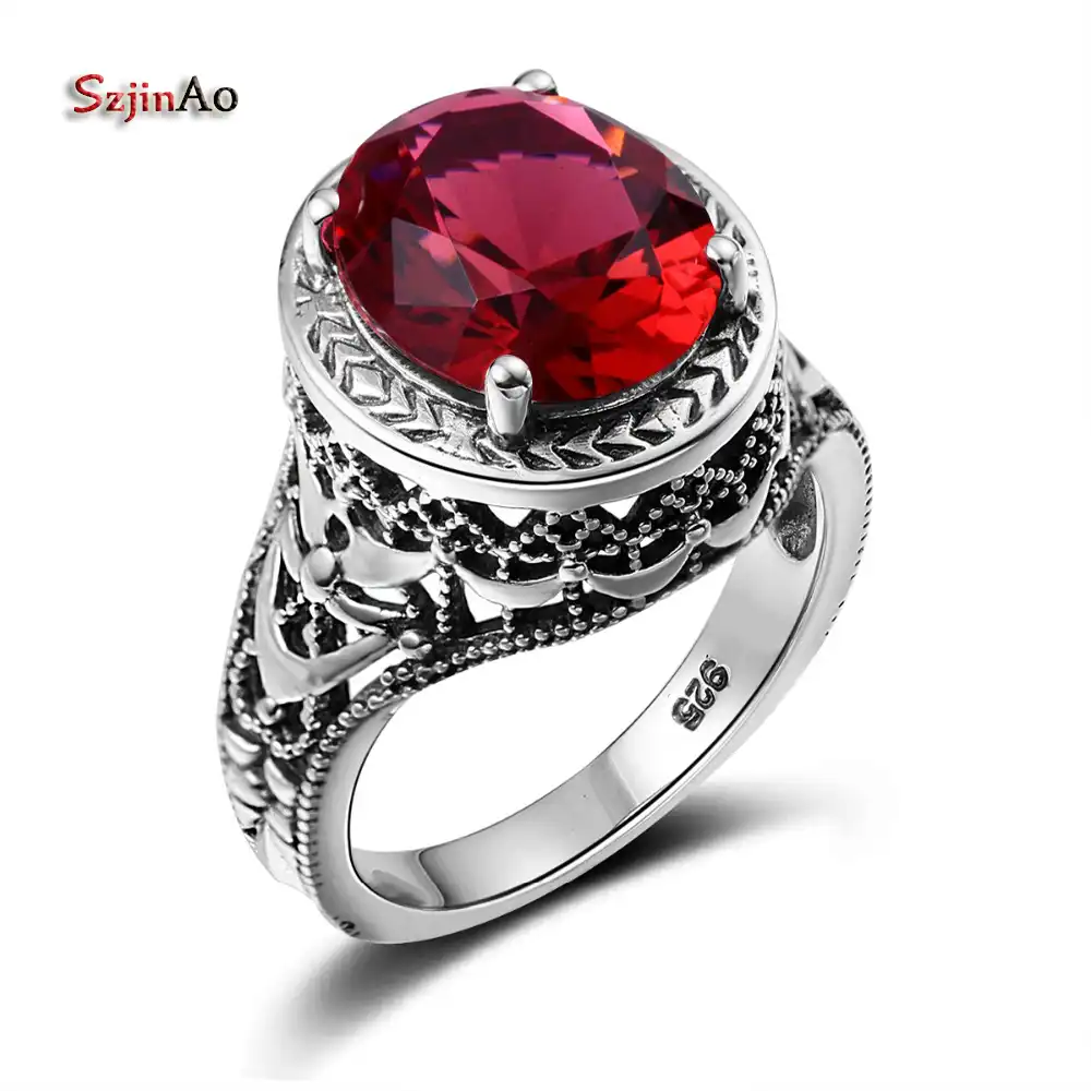 Szjinao Spartan Vintage Taki Oval Kirmizi Yakut Cicek Kaya El