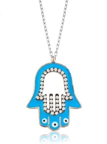 Nazar Goz Modeli Islemeli Hz Fatmanin Eli Gumus Kolye Dogal