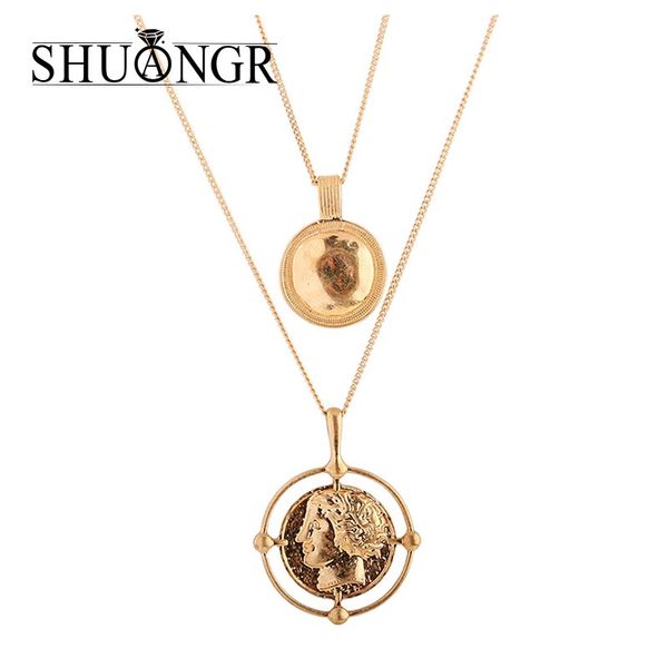 Satin Al Shuangr Cift Altin Katmanli Zincir Antik Paralar Kolye