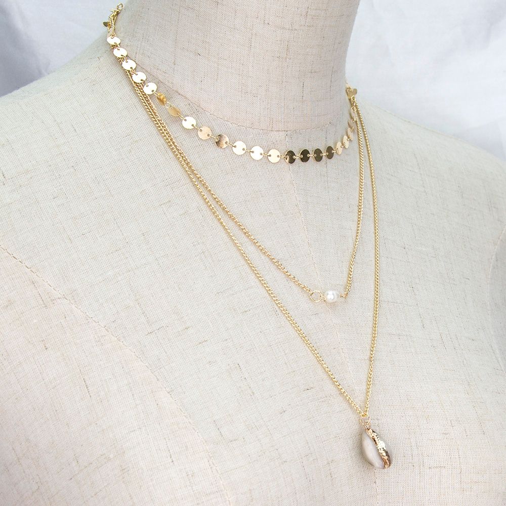 Satin Al Basit Yeni Payet Clavicle Zincir Moda Inci Kabuk Kolye